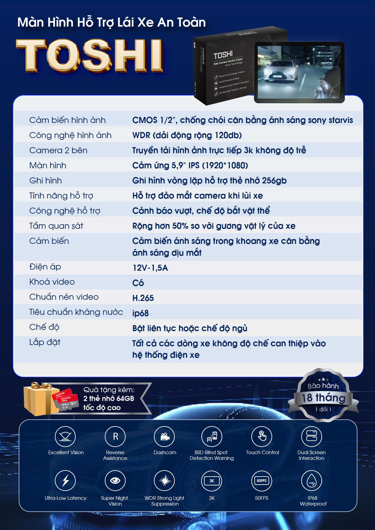 Toshi không chỉ là một hệ thống gương chiếu hậu – đó là sự kết hợp hoàn hảo giữa công nghệ tiên tiến và sự an toàn tối đa. Với khả năng loại bỏ điểm mù, hỗ trợ lùi xe, và hoạt động ổn định trong mọi điều kiện, Toshi mang đến trải nghiệm lái xe an toàn, tiện nghi, và đẳng cấp. Hãy chọn Toshi để nâng tầm xế yêu của bạn ngay hôm nay!